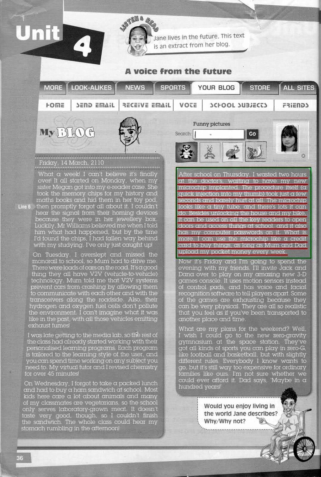 ALFAVITA.GR: Κι όμως αυτό διδάσκεται στους μαθητές της Α' Γυμνασίου στο μάθημα των Αγγλικών. Σε μια προσπάθεια προσομοίωσης των μαθητών με το πώς θα είναι η ζωή στο μέλλον και στα θετικά της τεχνολογικής εξέλιξης η μικρή Jane αναφέρει στο δικό της blog: