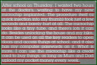 "Την Πέμπτη μετά το σχολείο, σπατάλησα δύο ώρες στο γιατρό περιμένοντας να μου εμφυτέψει το καινούργιο μου μικροτσίπ.